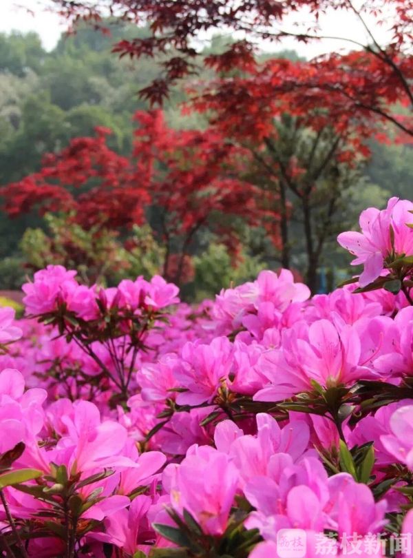 除了杜鹃,还可以观赏到五彩缤纷的晚樱、碧桃、茶花哦!