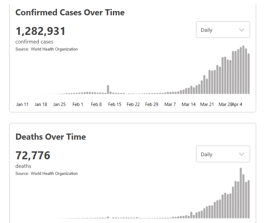 世卫组织:全球新冠肺炎确诊病例累计超过128万例