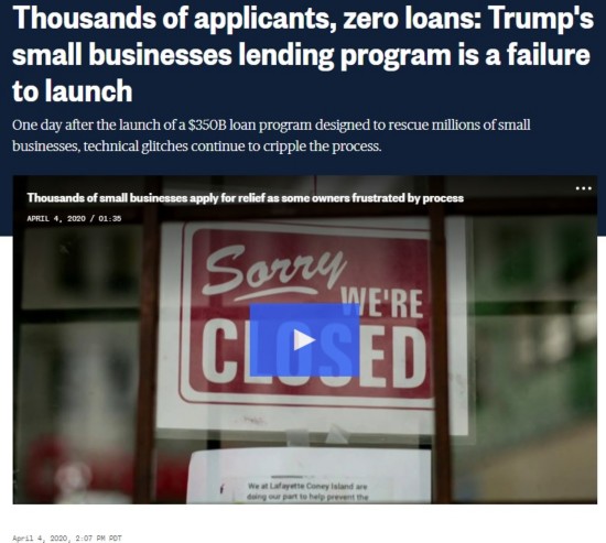 【美国媒体报道】万千申请零受理:特朗普小企业贷款计划开局即失利
