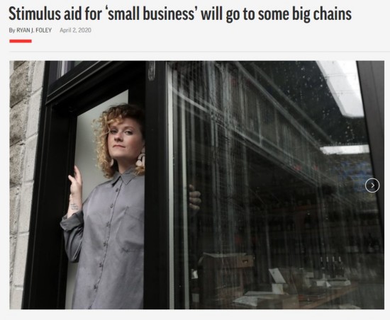 【美国媒体报道】所谓“小型企业”刺激款项将会给到大型连锁企业