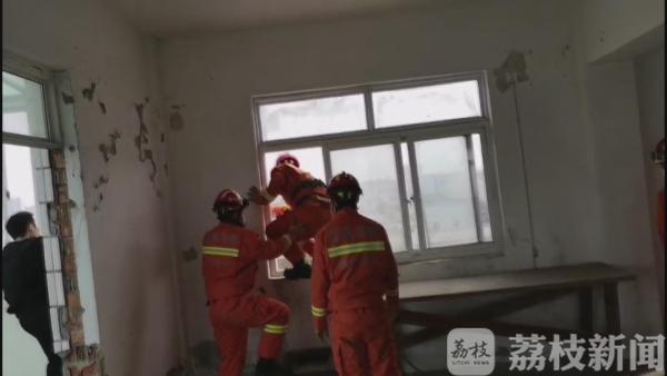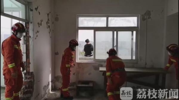 昨天(4月7日)下午2点半左右,镇江句容市巨宝路附近,一单位宿舍楼5楼窗户边缘坐着一名男子,双脚悬空,情绪比较激动,想要跳楼轻生。