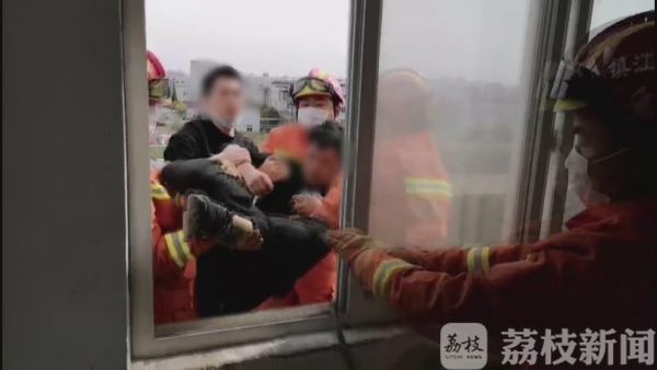 接到报警后,消防人员立即赶赴现场,先让该男子的朋友打电话给他安抚情绪,并转移注意力。