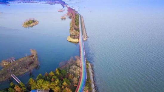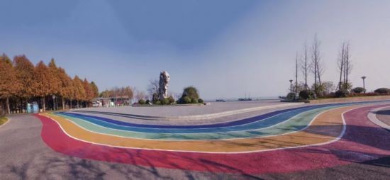 彩虹步道总长约3公里,位于贡湖湾湿地公园内,是2019年度无锡经开区为民办实事重点工程之一,更是深入贯彻“全民健身”、“健康中国”等国家战略的具体举措。步道由太湖大堤、水韵广场整合改造而来蜿蜒在粼粼的太湖波光中。