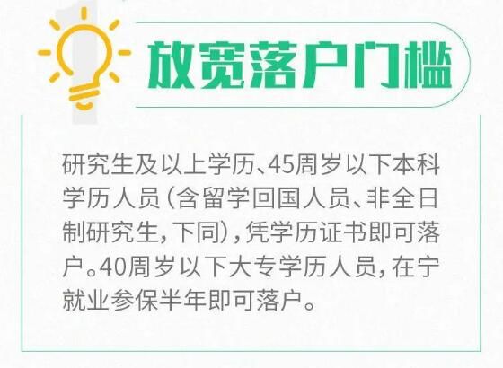 40周岁以下大专学历人员,在宁就业参保半年即可落户。