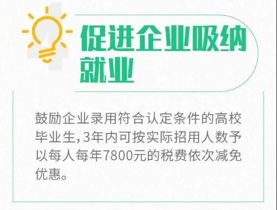 鼓励企业录用符合认定条件的高校毕业生,3年内可按实际招用人数予以每人每年7800元的税费依次减免优惠。
