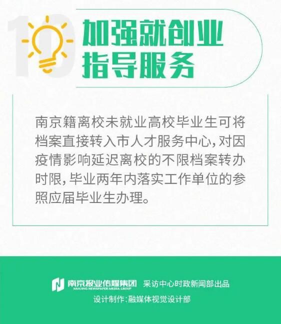 南京籍离校未就业高校毕业生可将档案直接转入市人才服务中心,对因疫情影响延迟离校的不限档案转办时限,毕业两年内落实工作单位的参照应届毕业生办理。