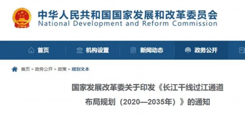 国家发改委官网今天公布《长江干线过江通道布局规划(2020—2035年)》,《规划》主要布局横跨长江干线主要航道、具有交通功能的过江通道项目。