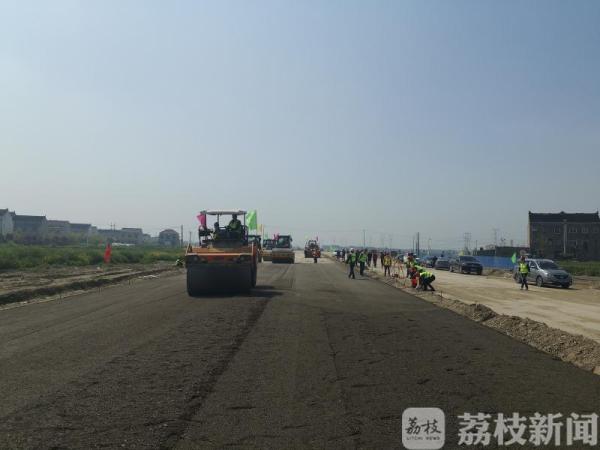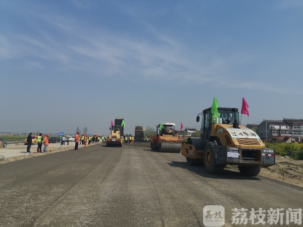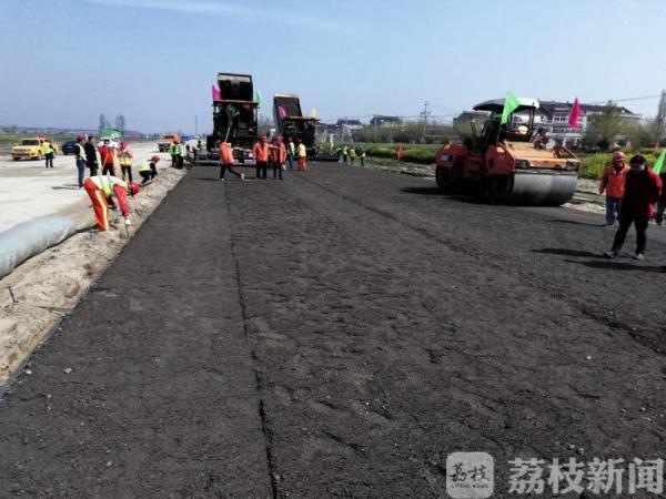 荔枝新闻讯 4月7日上午9:00,在232省道泰兴段一期工程施工现场,施工单位2台摊铺机、4台压路机及20多辆运输车密切配合,启动了路面水稳基层试验段摊铺施工,标志着该项目路面施工正式拉开帷幕。