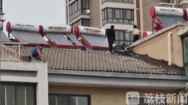 而在另一侧的房顶上,三名小女孩正在和这两名男孩交流,场面十分惊险。视频拍摄者介绍说,当时她也是很担心,但是又不敢惊吓到孩子,只能在心里捏一把冷汗。