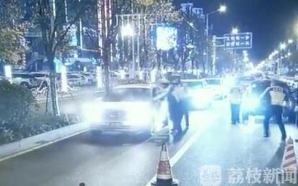 监控显示,当晚八点三十八分左右,这辆轿车由南向北行驶到国明岗时,发现有交警检查,突然加速冲了过去,将一名辅警刮倒在地。慌乱中,这辆轿车开进了一条正在施工的断头路,当交警赶到,驾驶员已经弃车逃窜。经过搜寻,民警在小树丛里找到了蹲着藏匿的驾驶员。现场吹气检查,该男子血液酒精含量远超醉驾标准。
