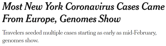 研究发现,如果早就积极开展检测,病毒隐蔽的传播可能已经被发现了。直到2月下旬,意大利才开始封锁城镇。3月11日,特朗普才表示将禁止大多数欧洲国家的旅行者入境。但是纽约人早已经带着这种病毒回家了。