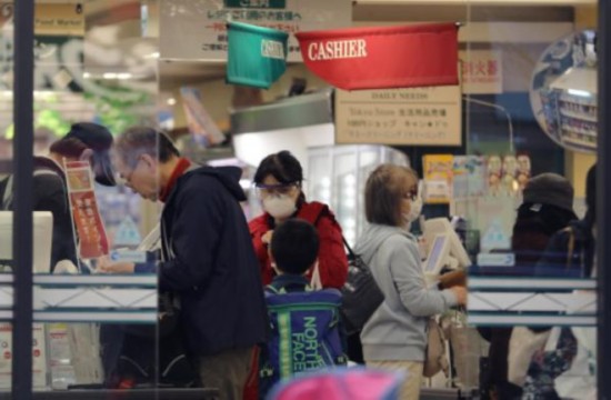 4月8日,在日本东京,顾客在一家超市内购物结账。新华社 图