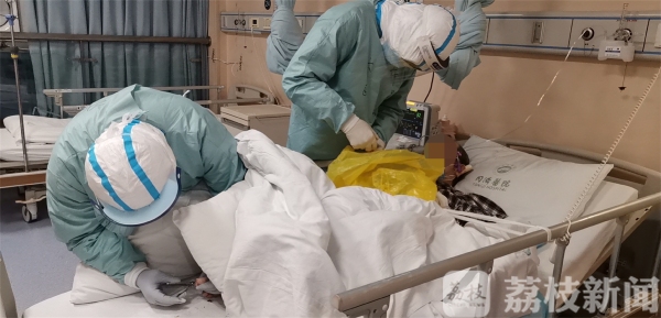 我明白了患者心中的一座大山压得他已经喘不过气来了,除了自己的身体,还有家人的安危。他父亲住在同一院区不同病区,没法联系。为了安慰患者,我想办法通过病区与病区之间的沟通,了解并确认相关信息后,再把患者父亲的信息传达给患者,并给予患者必要的心理疏导,每次都和他多聊几句,努力缓解他紧张的情绪。有一天,当我准备离开病房时,患者突然走到我面前,深深地向我鞠了一个躬,我的眼泪瞬时在眼眶里充盈。