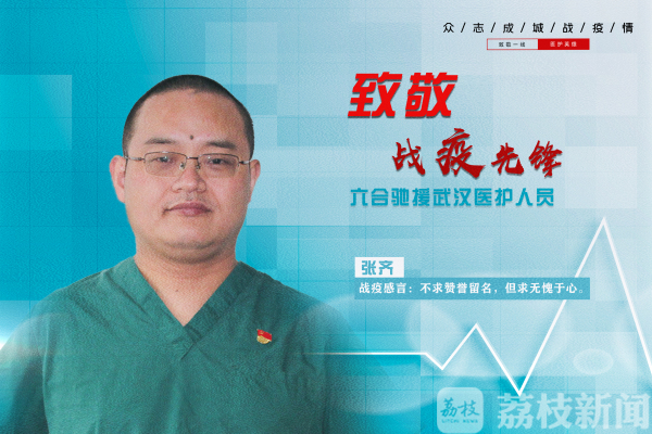 张齐,南京市六合区人民医院感染性疾病专业副主任医师。2020年2月9日,参加江苏省第五批援鄂医疗队出征,赴同济医院光谷院区参加战“疫”。在武汉战“疫”的52个昼夜里,张齐义无反顾,不畏艰险,冲锋陷阵,救人危难之间,践行医者担当。3月31日,圆满完成任务返回六合后,他用这几段小文记录了自己的心路历程。