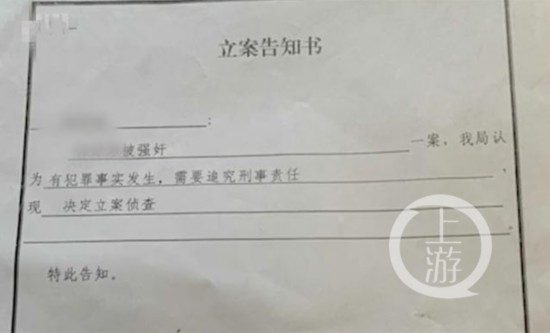 ▲烟台市公安局芝罘分局给当事人出具的《立案告知书》。视频截图