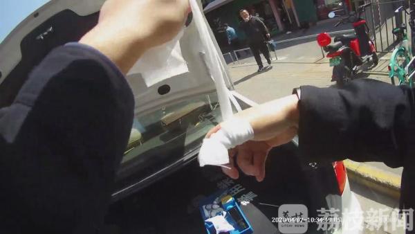等王某情绪平复下来后,民警也和王某沟通,无论遇到什么事,都不能采取过激的行为。要通过合法途径解决。事情处理完毕,民警这才发现,夺刀的过程中,手受了伤。