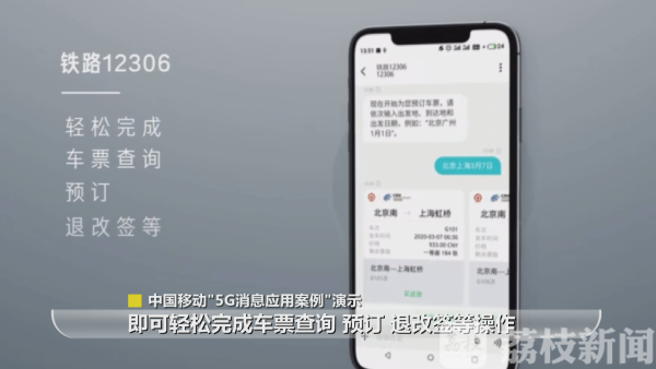 尤其吸引人的是,用户在消息窗口就可以实现搜索、交互、分享和支付等一站式业务体验。在中国移动推出的“5G消息应用案例”演示中,用户在“5G消息”对话窗口,即可轻松完成车票查询、预订,退改签等操作,酒店、餐饮预订、约车服务等延伸会员服务,也将跟随“5G消息”一并提供。