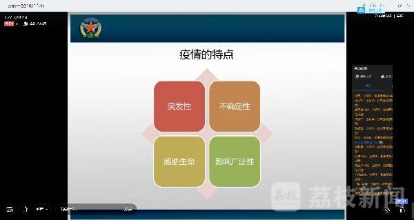 网络课堂以一段抖音上最火的“人脸潜水艇挑战”小游戏做开场。手机屏幕分隔了教员与学员之间的距,离却割不断他们之间的情感。活跃、欢快、活泼的课堂互动在他们之间快速传播开来,这可赚足了他们的眼球和笑脸。学员们直呼教员为“我的网红老师”。互动过后,教员重点讲述疫情热点问题,从“最美逆行者”到党员自发组成的社区志愿者,从夜以继日奋战一线的钟南山院士到默默无闻坚守平凡岗位的军警……在教员的讲述下,一幅全国人民众志成城齐心抗“疫”的画卷徐徐展开。学员们从王教员的课堂中了解到此次抗击疫情的不易,也感受到那些冲向一线的工作者的勇敢与坚定,这些在他们心里留下了深深的印象,为今后的军旅之路给予了不小的启发。