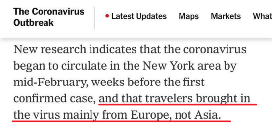 1月31日,特朗普已经禁止在两周内去过中国的非美籍人士进入美国。2月下旬,意大利才开始封锁城镇。此后,特朗普宣布3月13日起对除英国外所有欧洲国家实施30天旅行禁令。而根据《纽约时报》的报道,当时纽约人早已经携带这种病毒回到国内。