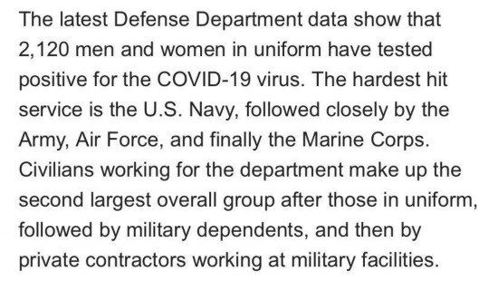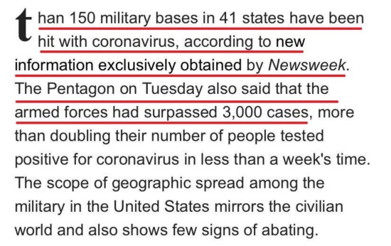 网友感叹道:“大多数军事基地出现了新冠肺炎病例。”