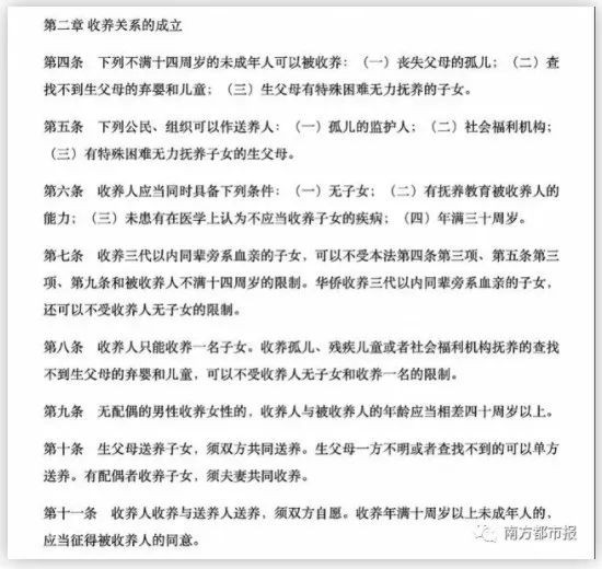 不过,“收养关系的成立”第七条指出,如果“收养三代以内同辈旁系血亲的子女”,则不受第九条的限制。