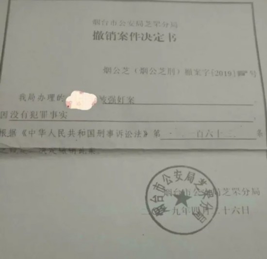 烟台市公安局芝罘分局对此事的撤案决定书