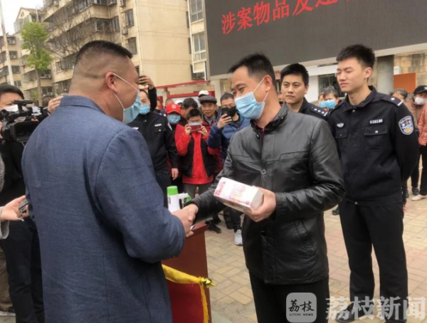 为了尽量追赃挽损,办案民警放弃清明假期,连夜开车多次往返淮北、徐州,从嫌疑人的隐匿赃物地起获了被盗的现金、奢侈品箱包、首饰、香烟等贵重物品。4月10日上午,徐州市公安局经开区分局刑警大队联合东环派出所在稼悦小区举行“3•22”系列盗窃案被盗物品集中返还仪式。