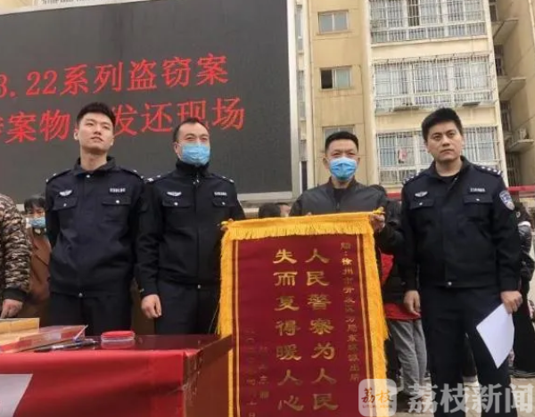 “这件事也给我一个深刻的教训,私家车不是保险箱,里面真的不能放现金和值钱的物品。”4月10日,在徐州市经济技术开发区稼悦小区“3•22”系列盗窃案被盗物品返还现场,家住沛县的杨先生领回了一捆原封未动的10万元钞票后,送上一面锦旗向警方致谢。