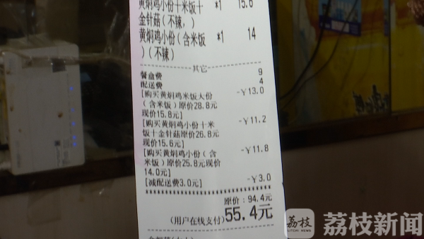 “这笔外卖订单,客户实际支付了55.4元,我实际到账42.15元,13块钱就被外卖平台拿走了。他们每单按18%到20%抽佣金,我们没有什么利润可挣,一份黄焖鸡米饭只能赚一两块钱吧,但是你不做,别人会做,我们就没有生意了。”黄焖鸡米饭店老板无奈地说。