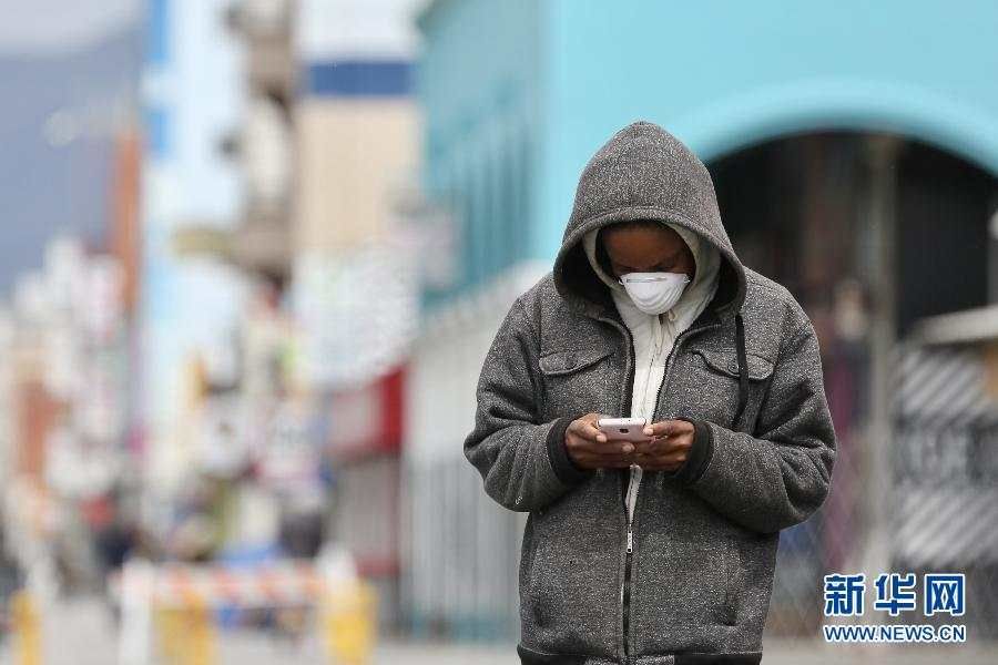4月10日,一名戴口罩的行人在美国洛杉矶威尼斯海滩看手机。 为减缓新冠病毒的传播,洛杉矶市长7日下令,民众在公共营业场所要戴口罩或用织物遮挡住脸,这一行政令于2020年4月10日生效。 新华社发