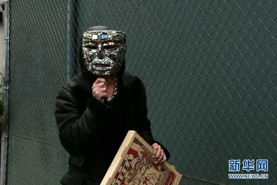 4月10日,一名青年男子用一个面罩遮脸走在美国洛杉矶的街道上。 为减缓新冠病毒的传播,洛杉矶市长7日下令,民众在公共营业场所要戴口罩或用织物遮挡住脸,这一行政令于2020年4月10日生效。 新华社发