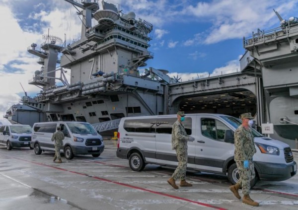 此外,在“罗斯福”号、“里根”号、“卡尔·文森”号以及“尼米兹”号等4艘航母上都发现了确诊病例,以“罗斯福”号疫情最为严重。