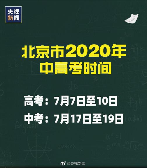 今天,北京市明确了2020年北京高考时间为7月7日至10日,北京中考时间为7月17日至19日。(总台央视记者王小节 张伟泽 邓煜洲)