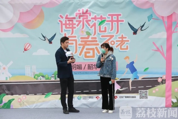 江苏广电南京中心站负责人,抖音号“小记杨威”博主在现场也进行了全程直播。直播过程中她采访了李如芝,也连线了火神山医院的志愿者蓝天救援队队员何旭明,邀请他云欣赏了南京江北新区浦滨路上的海棠花。