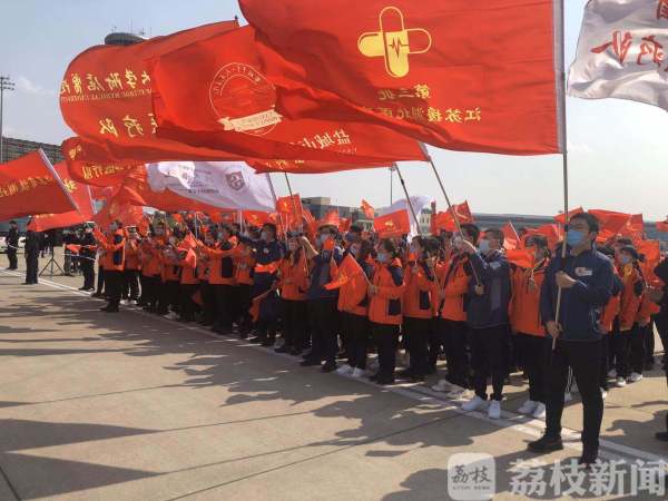 12日下午两点半,航班飞抵南京禄口国际机场,机场停机坪上飘扬着“欢迎回家”、“你们辛苦了”等各种横幅。在短暂停留后,医疗队员乘坐大巴返回家乡。