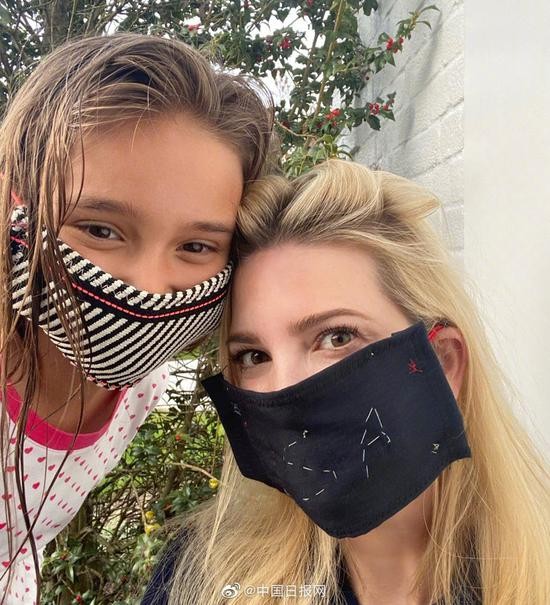 伊万卡还称,她和女儿伊莎贝尔为彼此互做口罩,呼吁民众按照网上的说明自制口罩。
