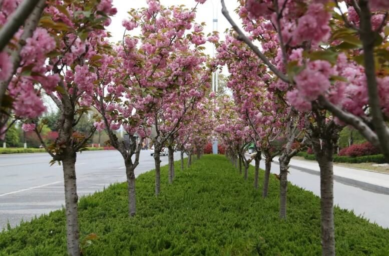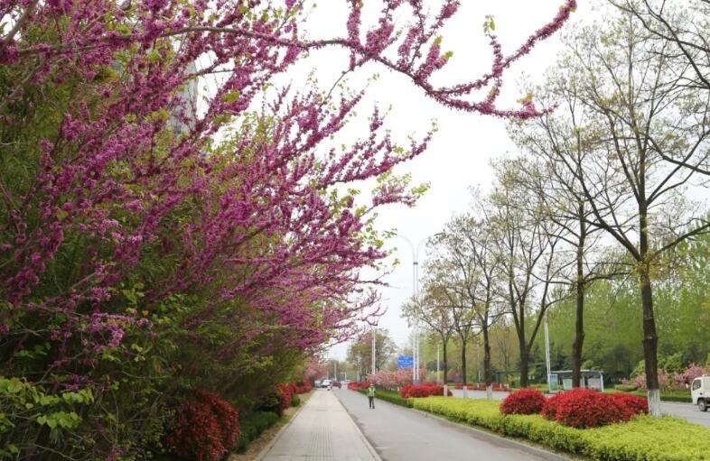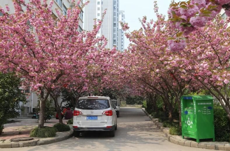 盛放的樱花不仅为小区增添了春意,也点缀了春日里的邳州街景。华山路上一路繁花,粉嫩的樱花渲染出一幅色彩艳丽的风景。在南京路南延、陇海大道,樱花与绿植间隔,点缀道路风景。