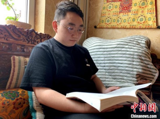 图为解除隔离后在家看书的才仁多杰。李江宁 摄