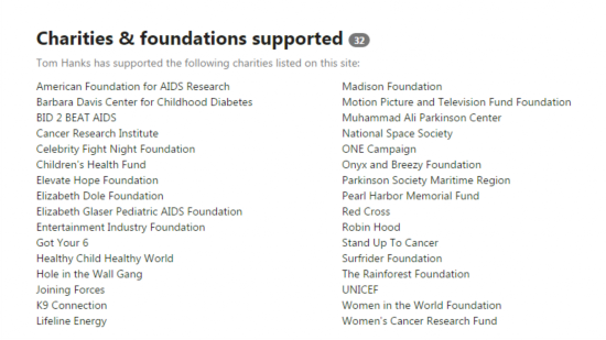 不仅仅是戏里,生活中他资助了多个慈善组织。包括癌症防治、艾滋病研究、女性权利、贫困儿童救助等。