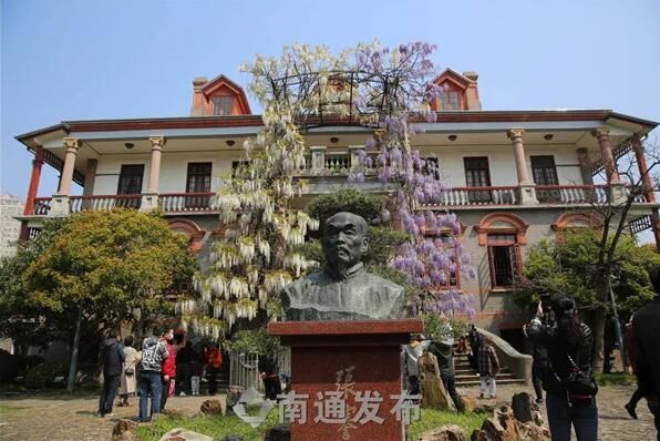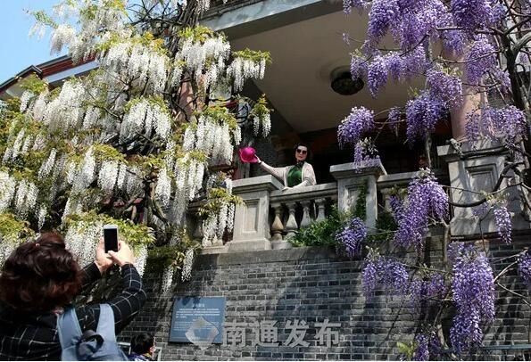 两株紫藤,位于濠南别业南侧。濠南别业为张謇先生故居,建于1914年。