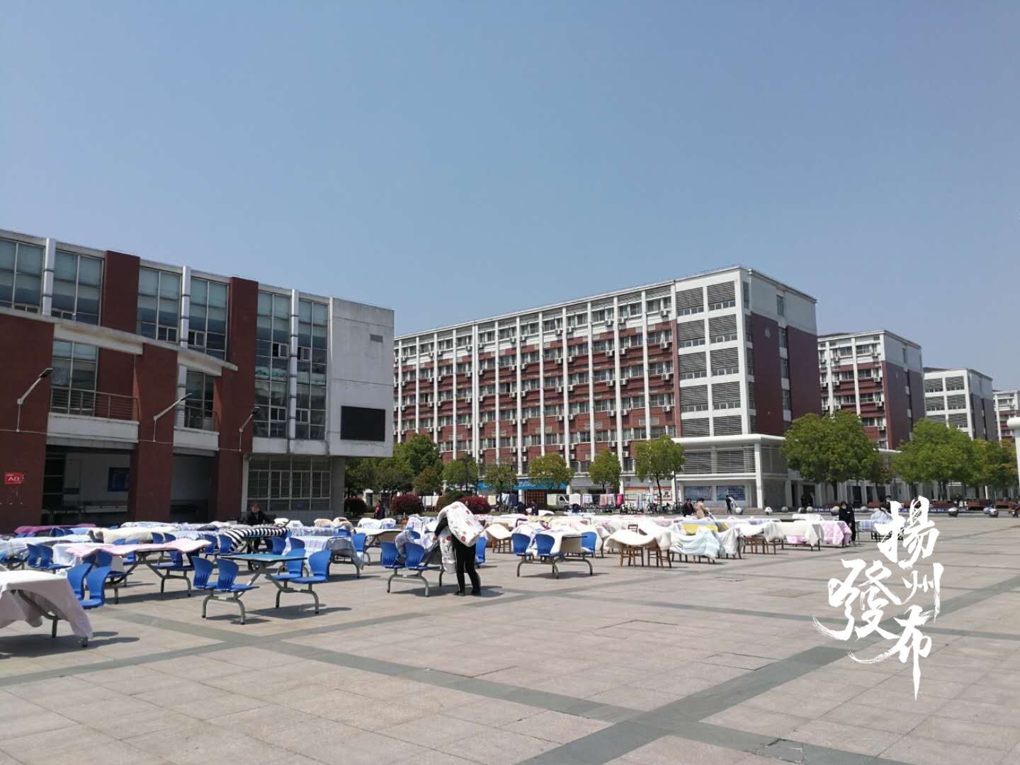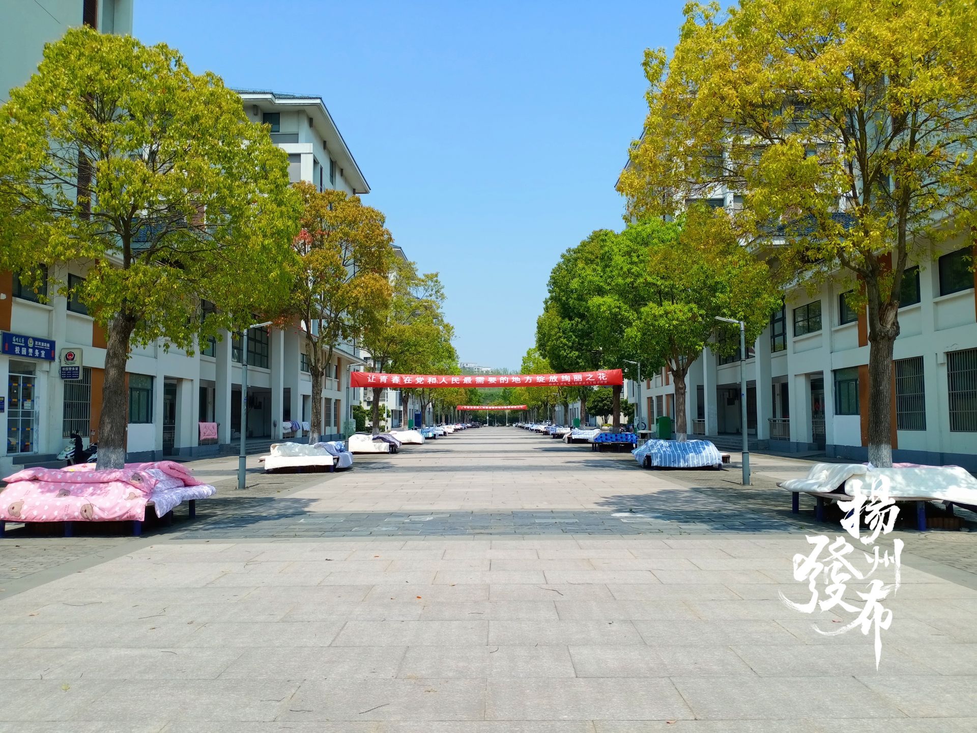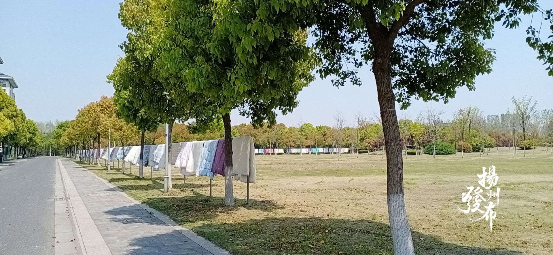 4月19日,扬州大学将安排学生分期分批、错峰返校,第一批将是毕业班硕士研究生。今天,记者从该校了解到,目前,各个校区的开学准备工作正在有序进行。在学生宿舍楼下,宿管阿姨正负责将学生的被褥分批拿到空旷的地方进行晾晒,并做好标记,晒完后再放回原处,尽可能保证原样。