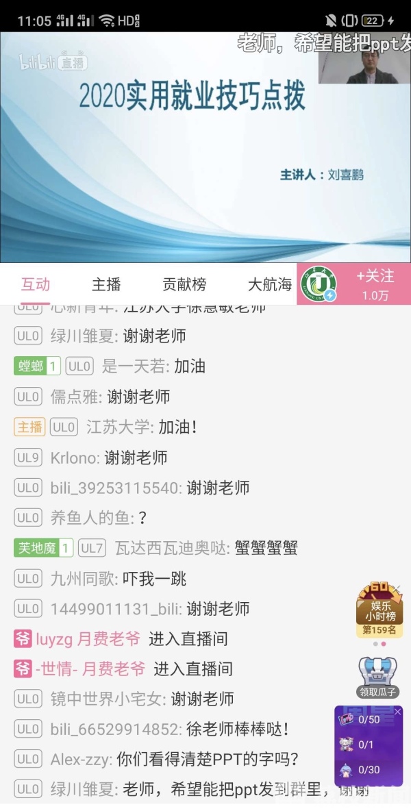 四位主讲老师也在直播结束时围绕学生最关切的问题进行了耐心细致的解答。直播过程中,还有20余人的学校就业指导团队全程在线实时解答大学生提出的有关问题。