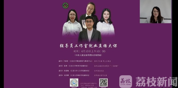 最近,“江苏大学辅导员工作室就业直播大课”在同学们当中火了一把。四位辅导员担任主讲嘉宾,线上指导网上求职的各方面注意事项,江苏大学三四年级本科学生聆听了本场直播,江苏大学官方B站直播间人气值达1.5万人次。
