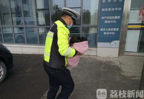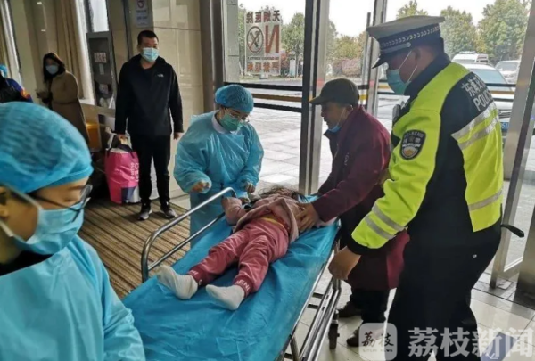 “快上车,救孩子要紧!”现场民警查看伤势后,立即将孩子抱上车,并驾车一路连闯5个红灯,仅用了5分钟就到达连云港东海县人民医院。期间,民警联系了医院通报有关情况,一到医院,就抱着女孩冲进了急诊室。