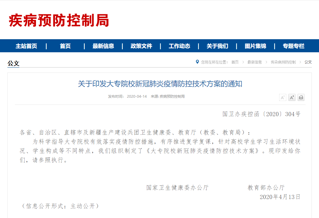 为科学指导大专院校有效落实疫情防控措施,有序推进复学复课,针对高校学生学习生活环境状况、学生构成等不同特点,我们组织制定了《大专院校新冠肺炎疫情防控技术方案》。现印发给你们,请参照执行。