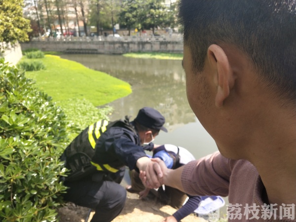 近日,南京鼓楼公安分局中山桥警务站接到群众报警,称大桥南路家乐福对面的护城河里,有一名男子被困在小船上,需要警方救助。