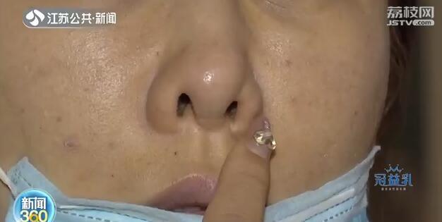 【两侧鼻孔“一大一小” 还露出了白色的假体】