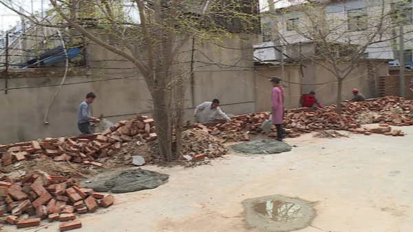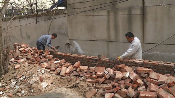 近日,记者走进运河街道商城公寓小区内,工人在整修加固小区两侧的围墙。原来的围墙就是一层砖泥墙,破损严重,不但影响美观,也存在安全隐患。