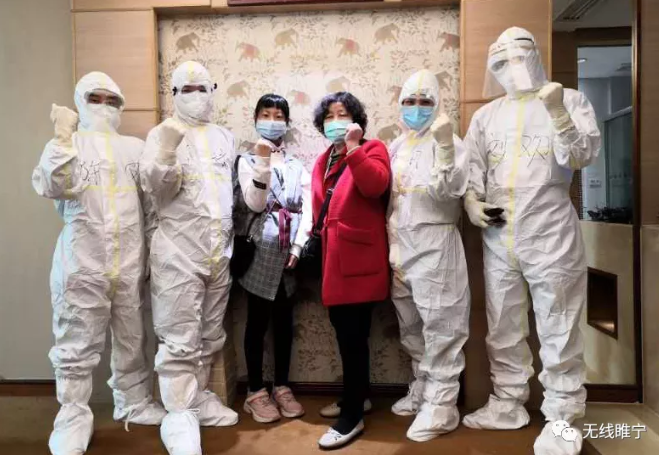 刘欢与确诊病人隔离期满出院时合影。