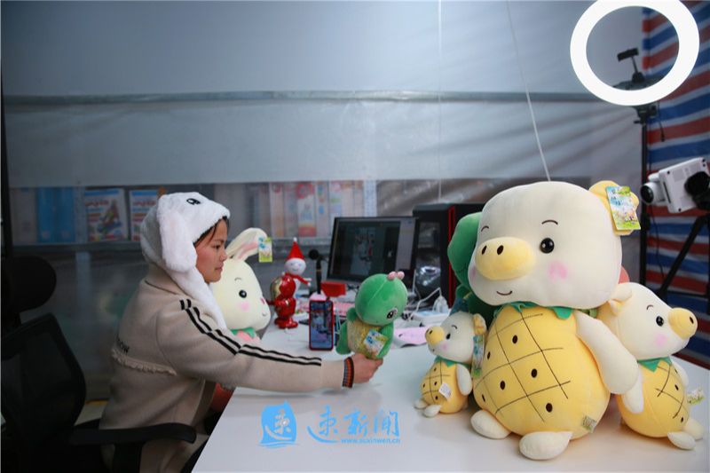 “这些都是我们厂生产出来的玩具,为了提高销售量,我们开通了直播。”宿迁亲依娃商贸有限公司负责人张学红说,疫情下用直播方式卖毛绒玩具效果非常好,有时候主播是工厂里面的员工、客服,有时候她也会参与直播,也会带着女儿一起直播。